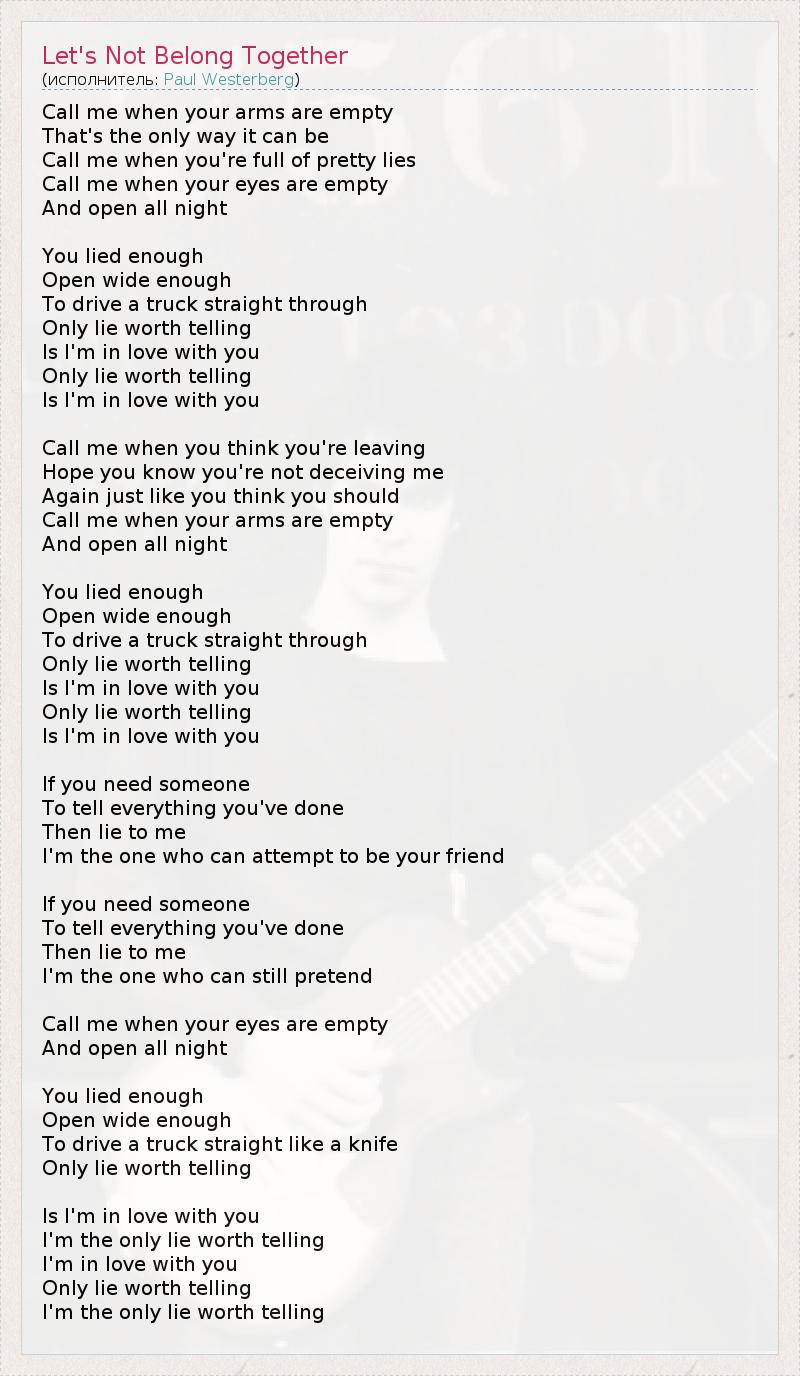 ГлавнаяИсполнителиPaul WesterbergLet's Not Belong Together