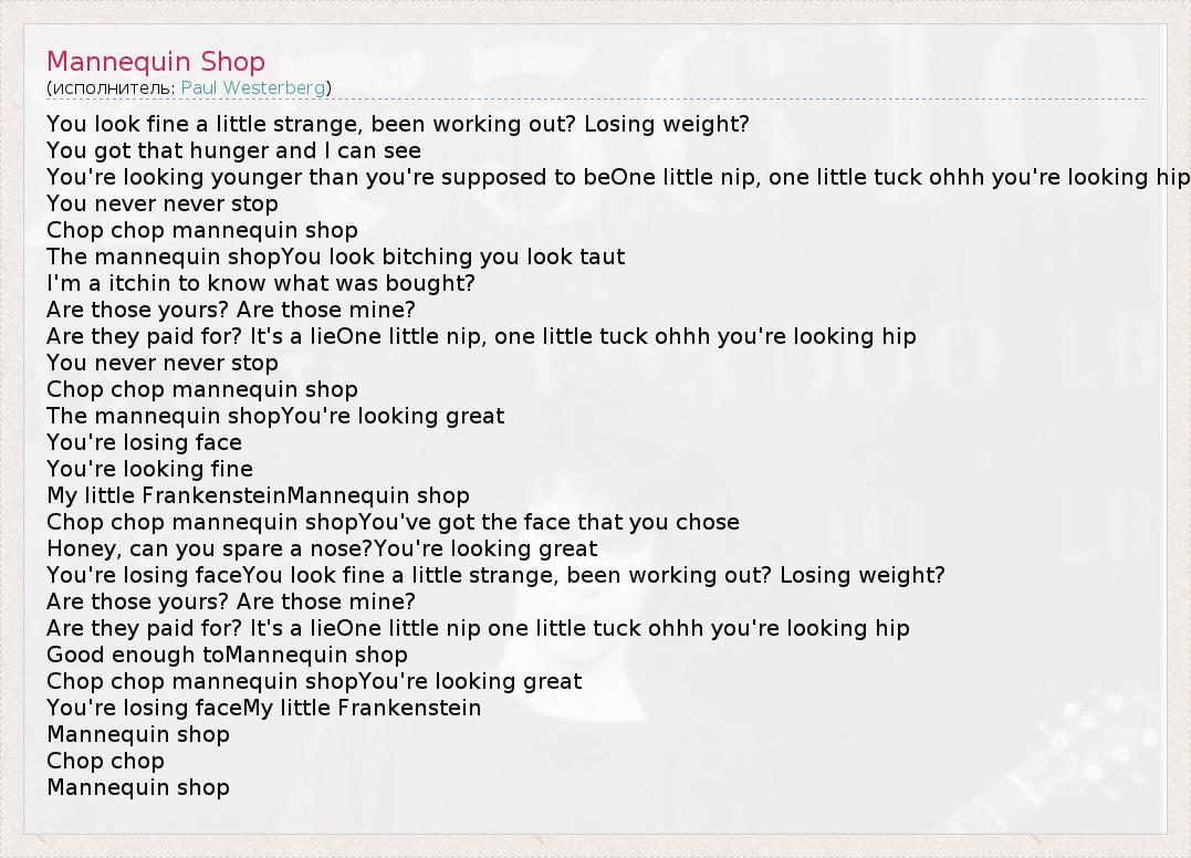 А как ты думаешь, о чем песня "Mannequin Shop" ?