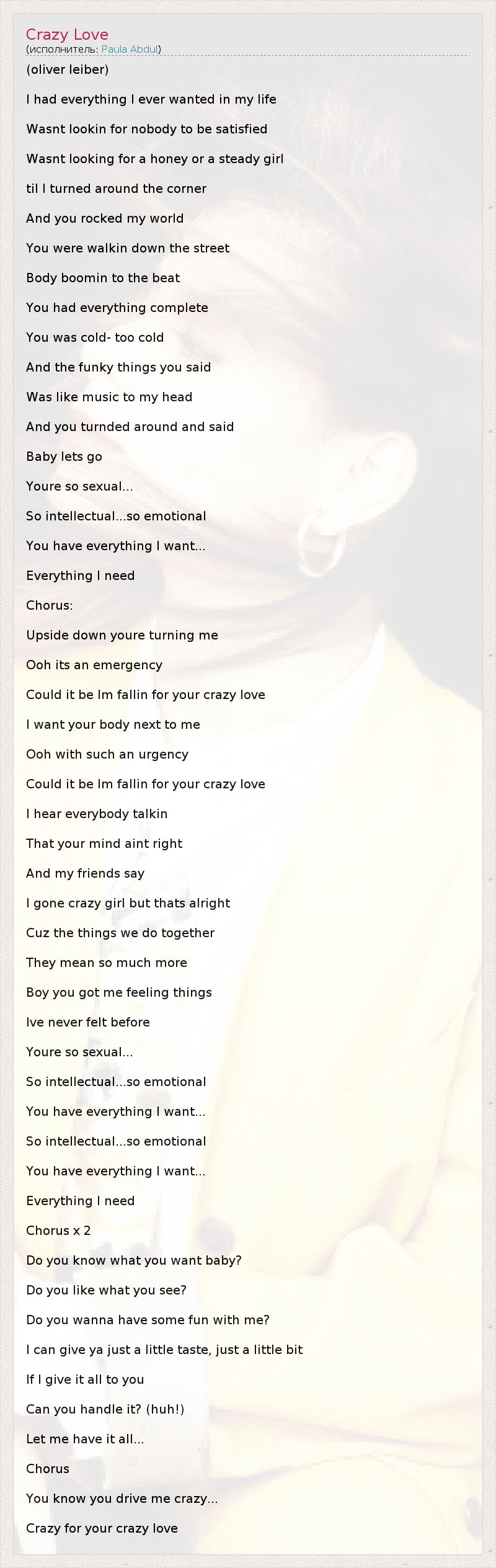 А как ты думаешь, о чем песня "Crazy Love" ?