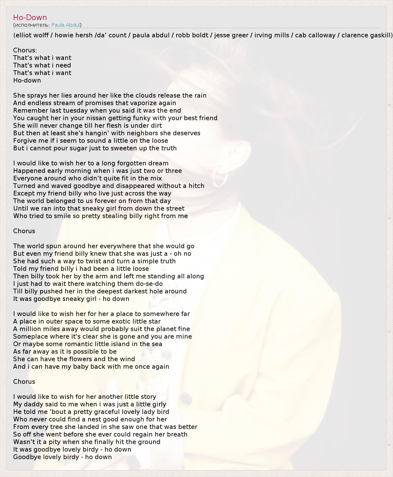 А как ты думаешь, о чем песня "Ho-Down" ?