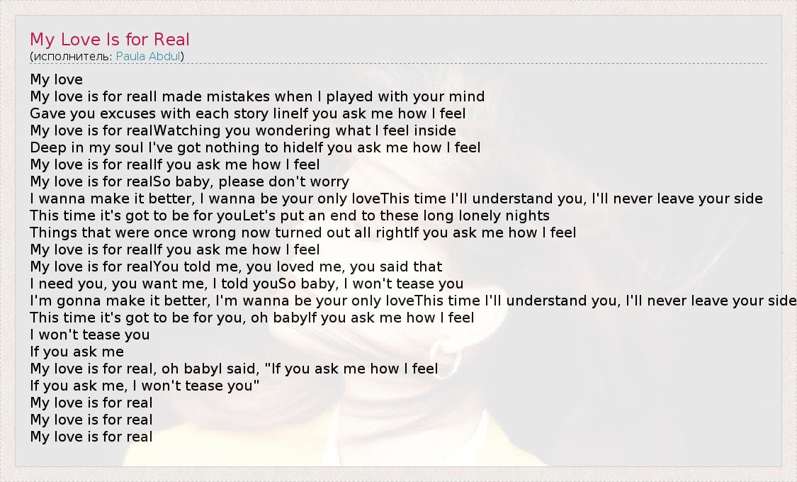 А как ты думаешь, о чем песня "My Love Is for Real" ?