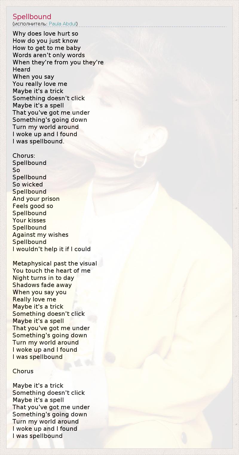 Это интересно:Певица Пола Абдул родилась в 1963 году в США. Пола Абдул (по происхождению - наполовину бразилианка, наполовину - сирийка), прежде всего, - замечательный хореограф, в 1986 году получила награду MTV как лучший хореограф года за танцы, поставленные для клипа Джанет Джексон "Nasty". Ставила танцы для видео клипов и сценических шоу Лютера Вандросса, Duran Duran, ZZ Top и группы The Jacksons: семейство Джексонов... продолжение