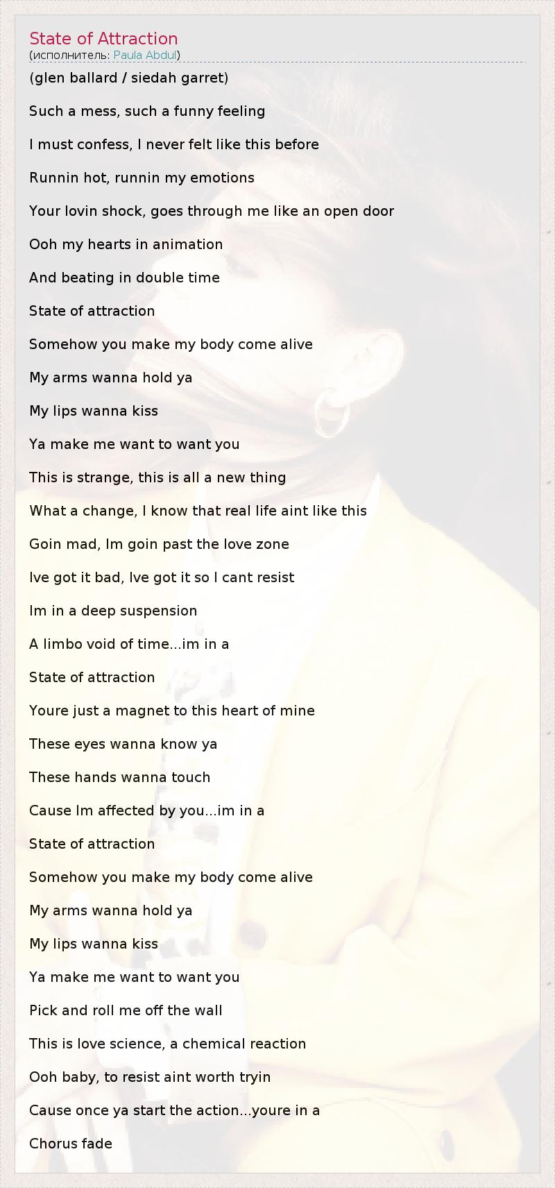 А как ты думаешь, о чем песня "State of Attraction" ?