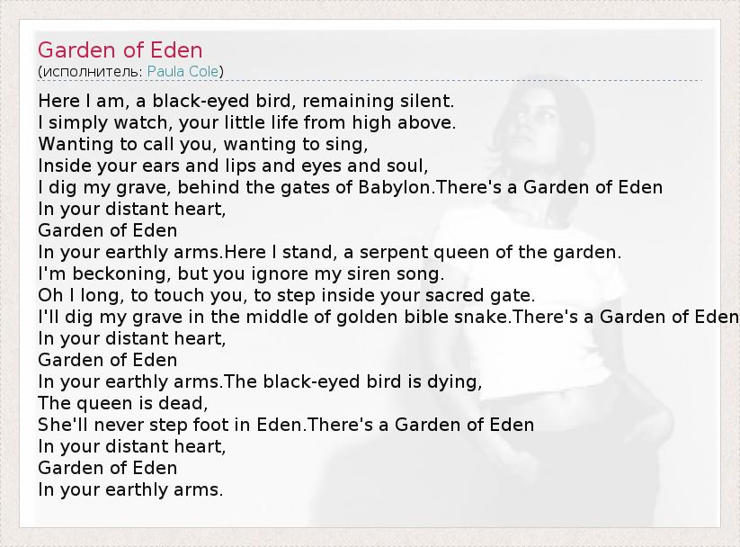 А как ты думаешь, о чем песня "Garden of Eden" ?
