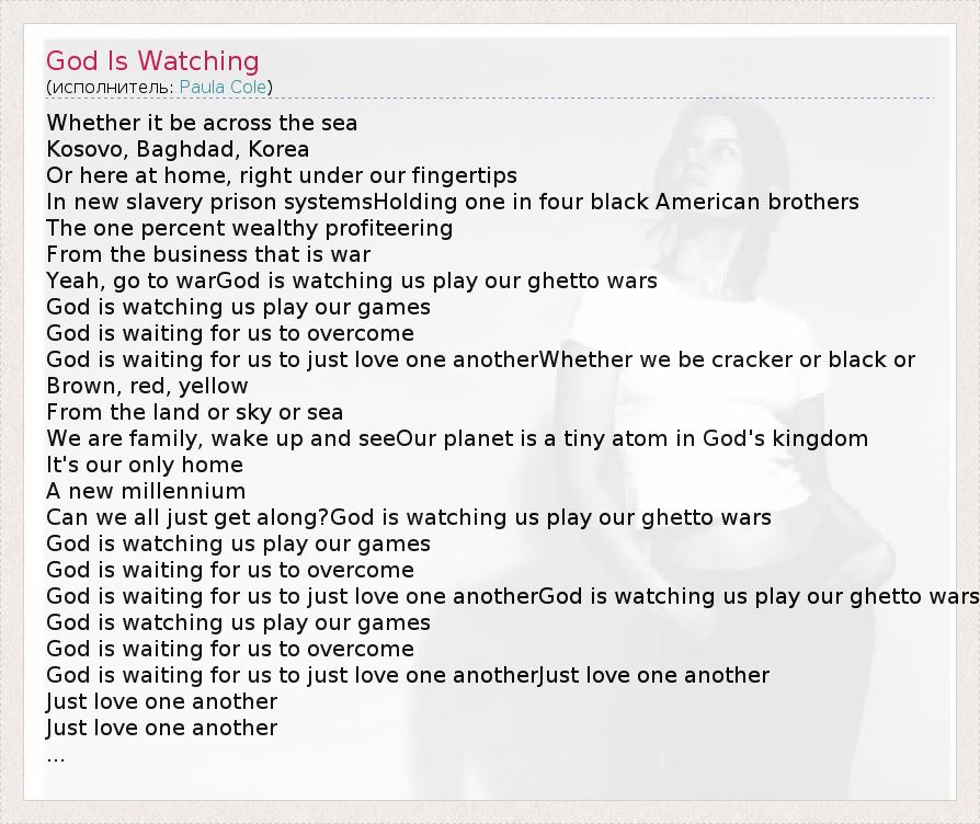 А как ты думаешь, о чем песня "God Is Watching" ?
