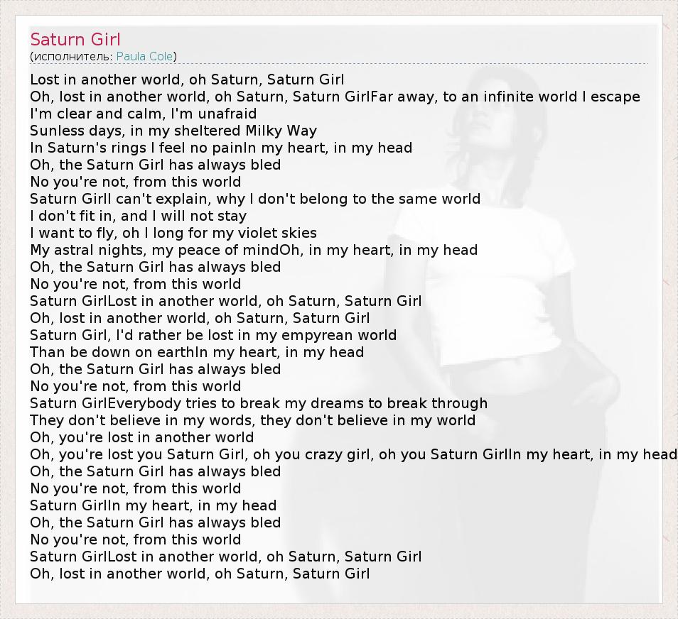 А как ты думаешь, о чем песня "Saturn Girl" ?