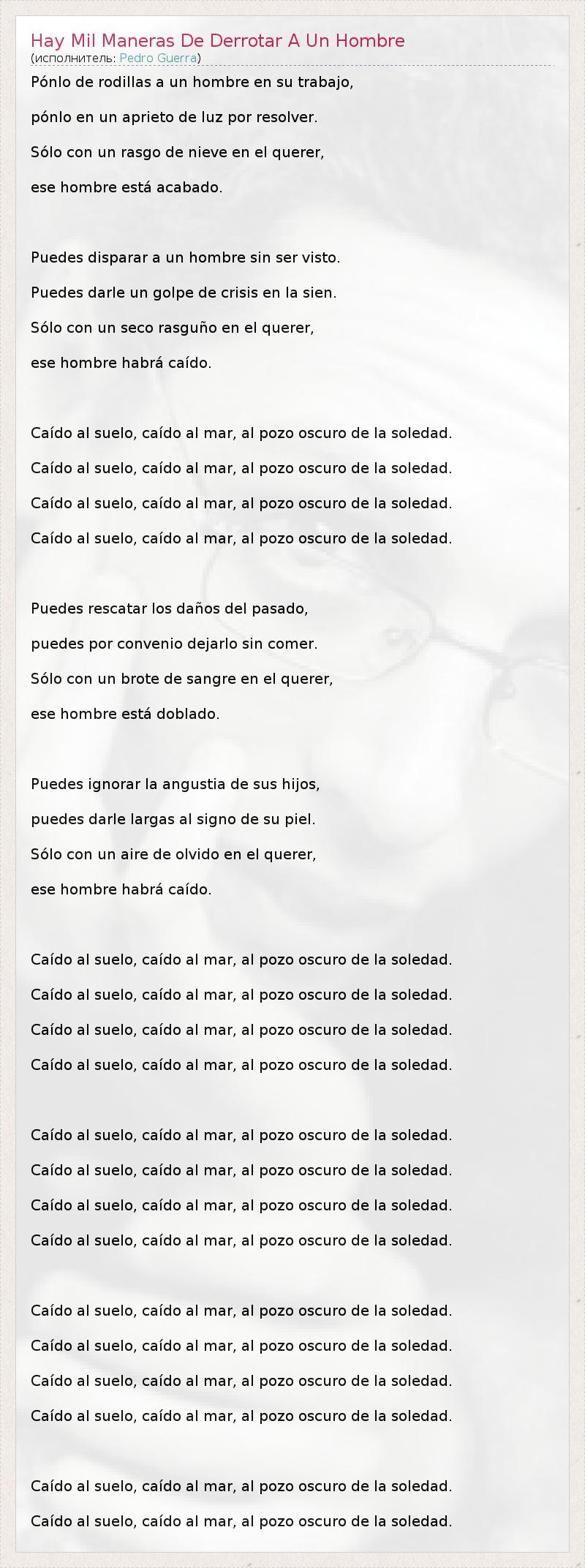 ГлавнаяИсполнителиPedro GuerraHay Mil Maneras De Derrotar A Un Hombre