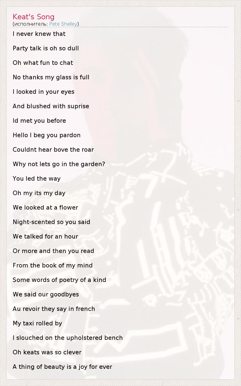 А как ты думаешь, о чем песня "Keat's Song" ?