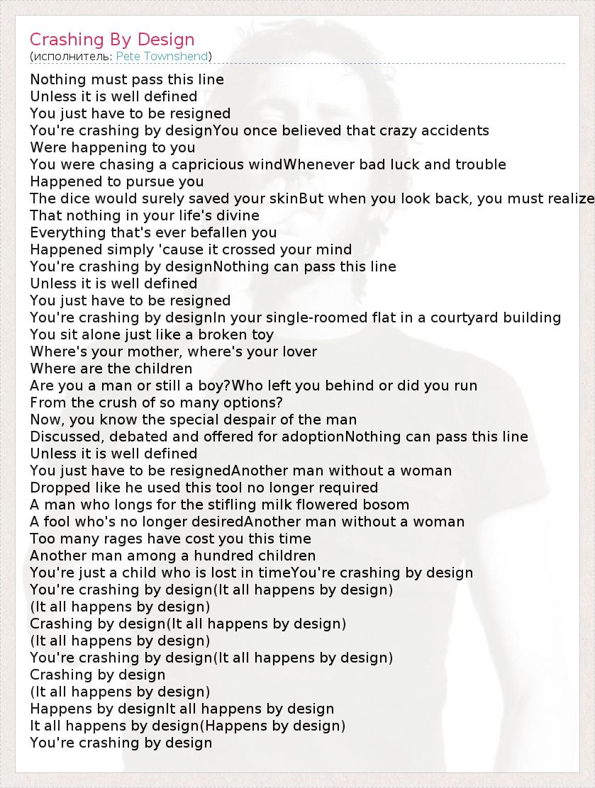 А как ты думаешь, о чем песня "Crashing By Design" ?