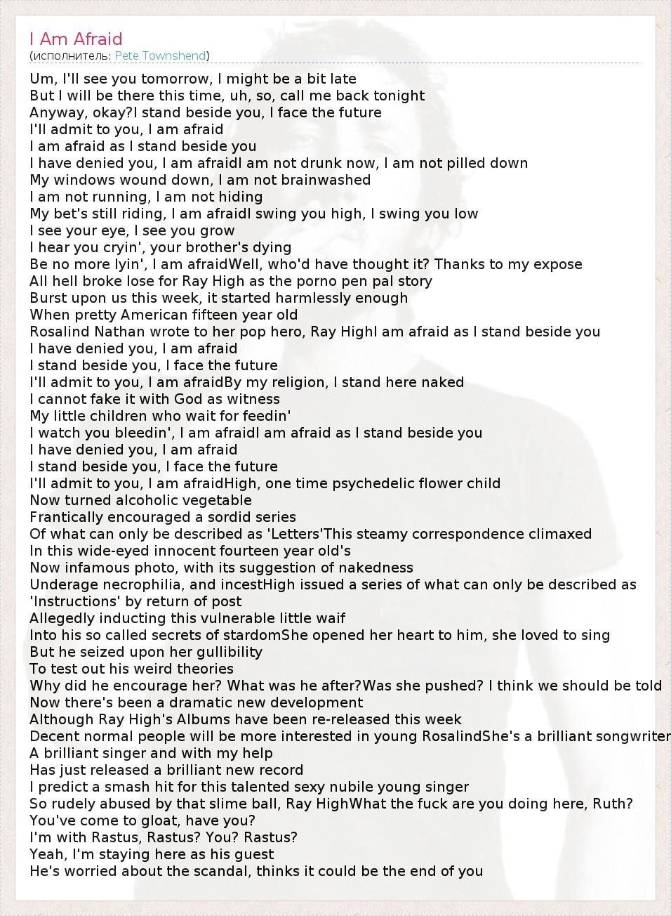 А как ты думаешь, о чем песня "I Am Afraid" ?