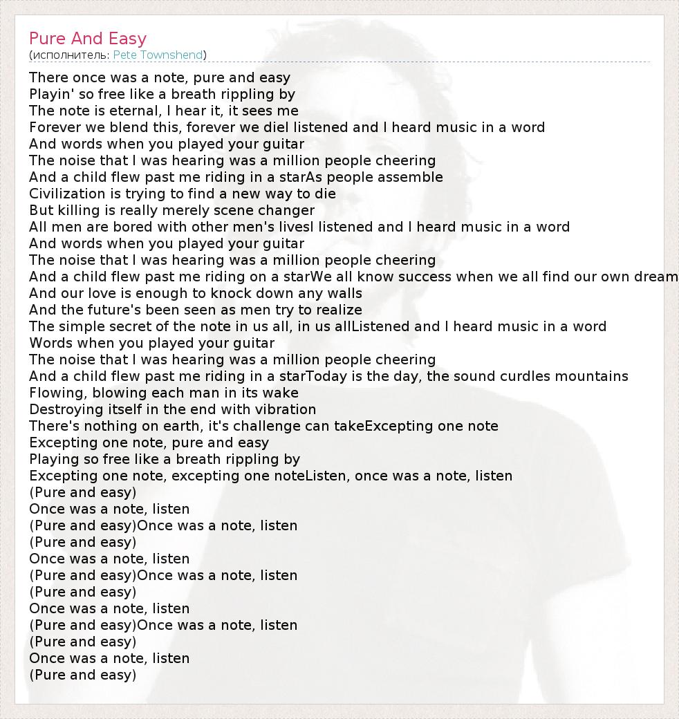 А как ты думаешь, о чем песня "Pure And Easy" ?