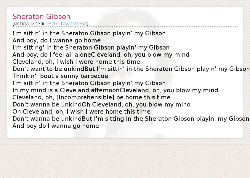 А как ты думаешь, о чем песня "Sheraton Gibson" ?