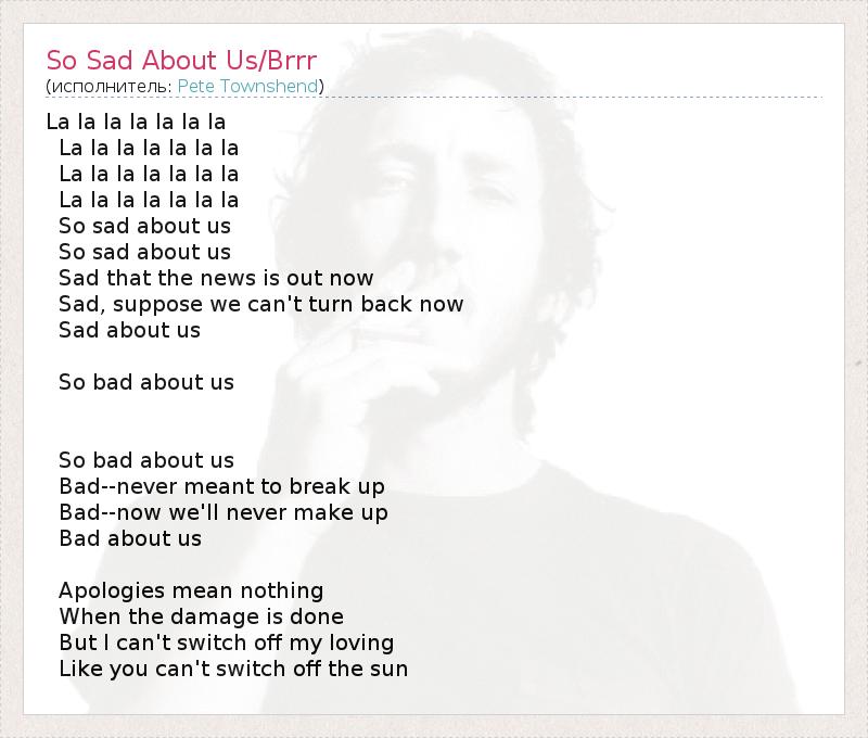 А как ты думаешь, о чем песня "So Sad About Us/Brrr" ?