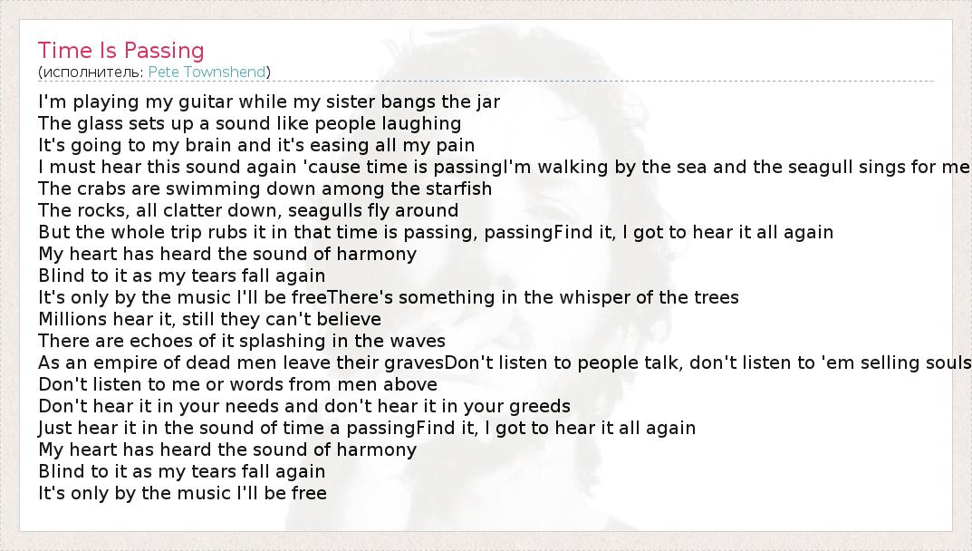 А как ты думаешь, о чем песня "Time Is Passing" ?