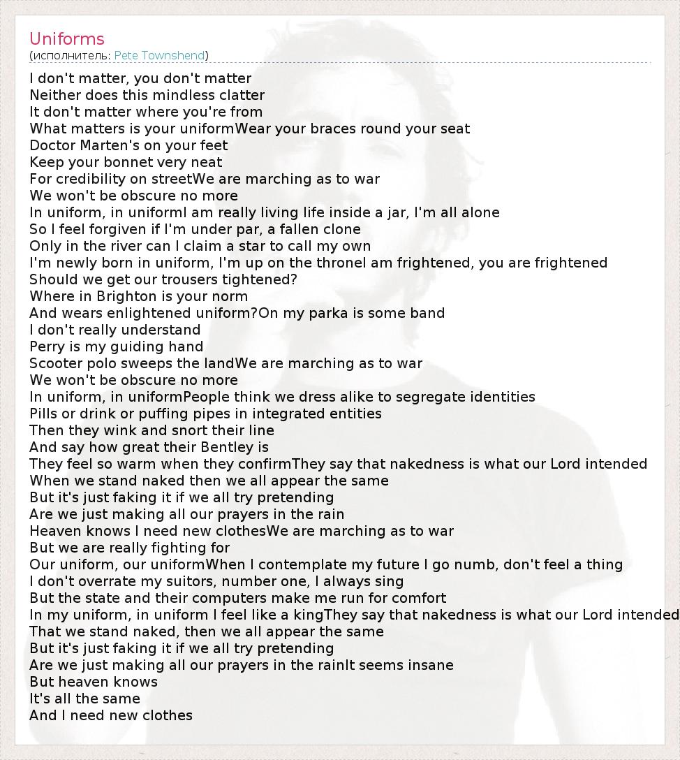 In my uniform, in uniform I feel like a kingThey say that nakedness is what our Lord intended