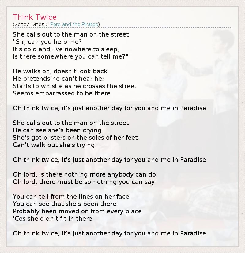 О, подумай дважды, ведь это просто ещё один день в раю для нас с тобой.