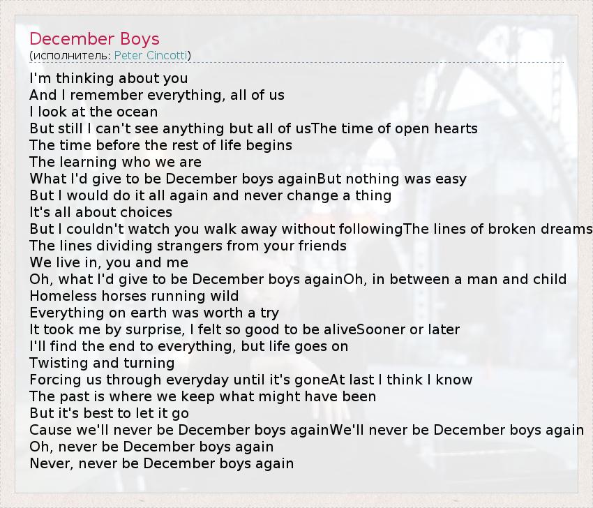 Oh, what I'd give to be December boys againOh, in between a man and child