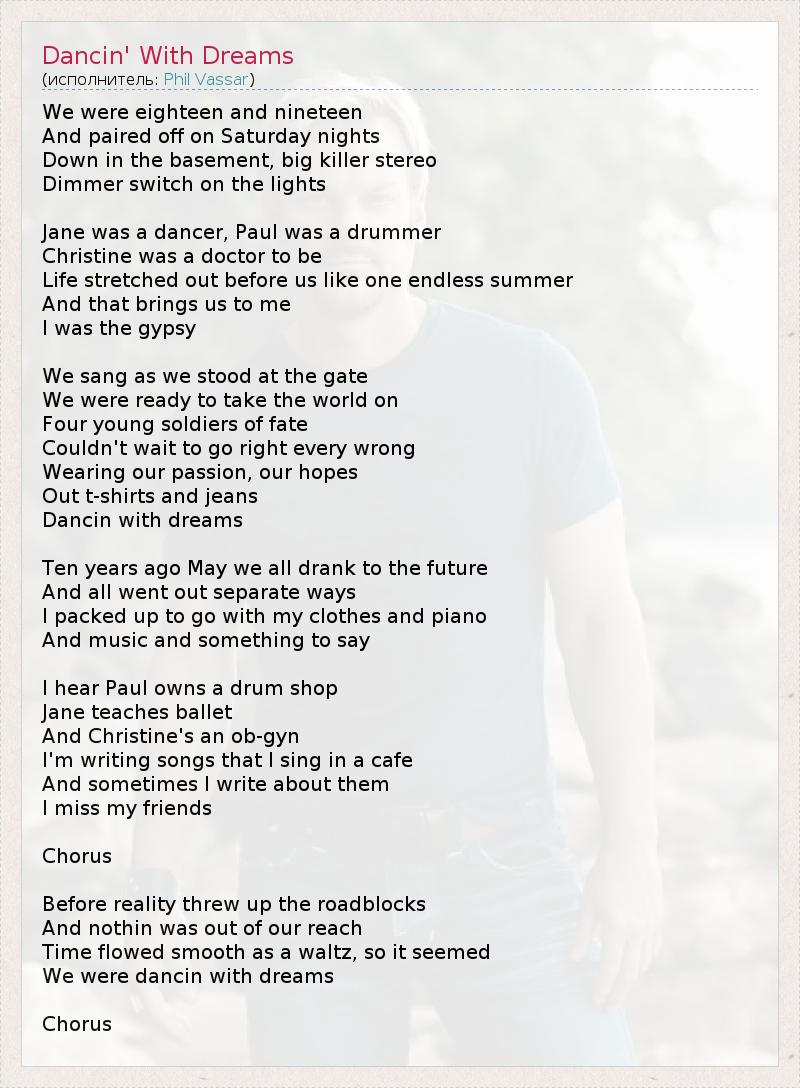 А как ты думаешь, о чем песня "Dancin' With Dreams" ?