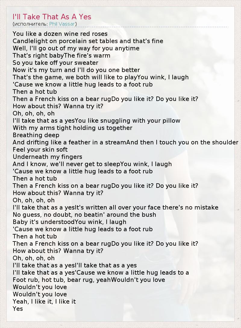 А как ты думаешь, о чем песня "I'll Take That As A Yes" ?