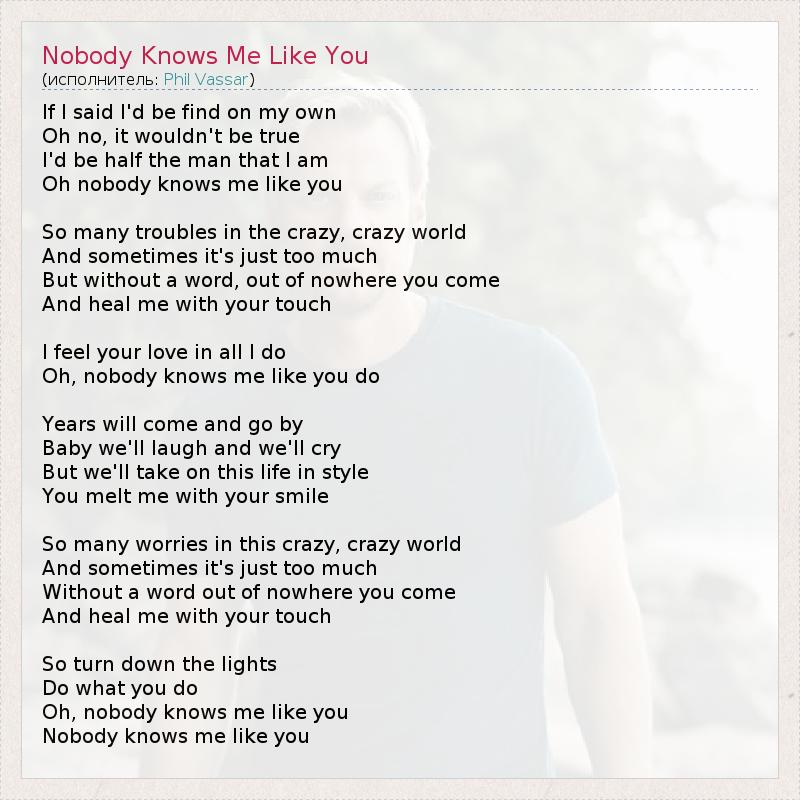 ГлавнаяИсполнителиPhil VassarNobody Knows Me Like You
