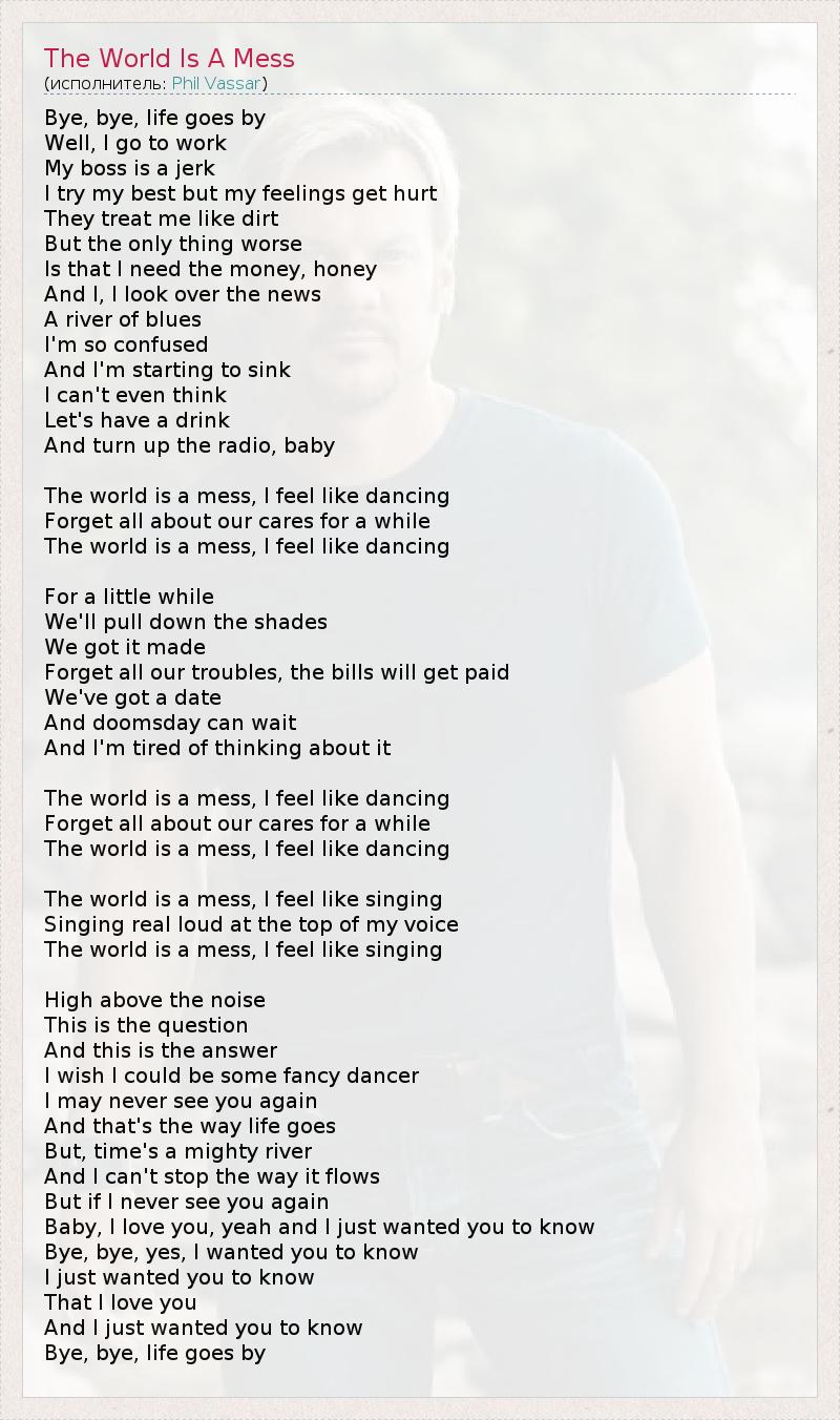 The world is a mess, I feel like singing