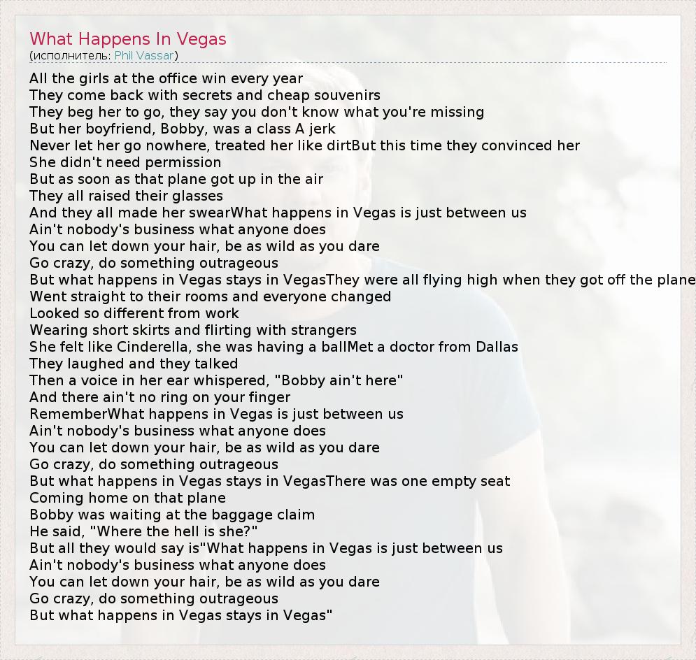 А как ты думаешь, о чем песня "What Happens In Vegas" ?