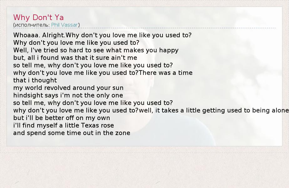 А как ты думаешь, о чем песня "Why Don't Ya" ?
