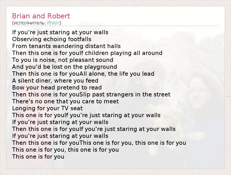 А как ты думаешь, о чем песня "Brian and Robert" ?