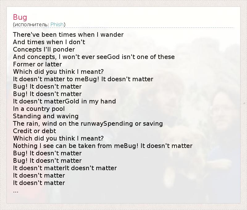 Это интересно:Phish — американская рок-группа, примечательная своими джем-сейшнами, импровизациями и постмодернистским смешением жанров. Phish была образована в 1983 году в университете Вермонта. Четыре ее участника выступали вместе 21 год, пока не распались в августе 2004 года. Их музыка содержала в себе элементы широкoго спектра жанров, и каждый их концерт был оригинальным в плане исполнения песен, порядка... продолжение