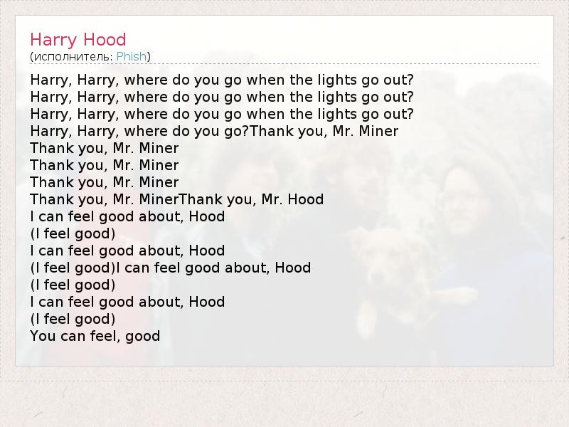 А как ты думаешь, о чем песня "Harry Hood" ?