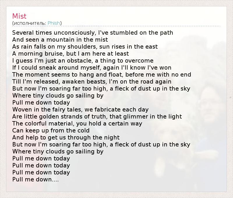 Это интересно:Phish — американская рок-группа, примечательная своими джем-сейшнами, импровизациями и постмодернистским смешением жанров. Phish была образована в 1983 году в университете Вермонта. Четыре ее участника выступали вместе 21 год, пока не распались в августе 2004 года. Их музыка содержала в себе элементы широкoго спектра жанров, и каждый их концерт был оригинальным в плане исполнения песен, порядка... продолжение