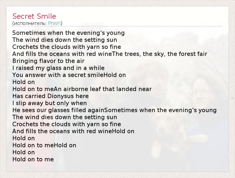 А как ты думаешь, о чем песня "Secret Smile" ?