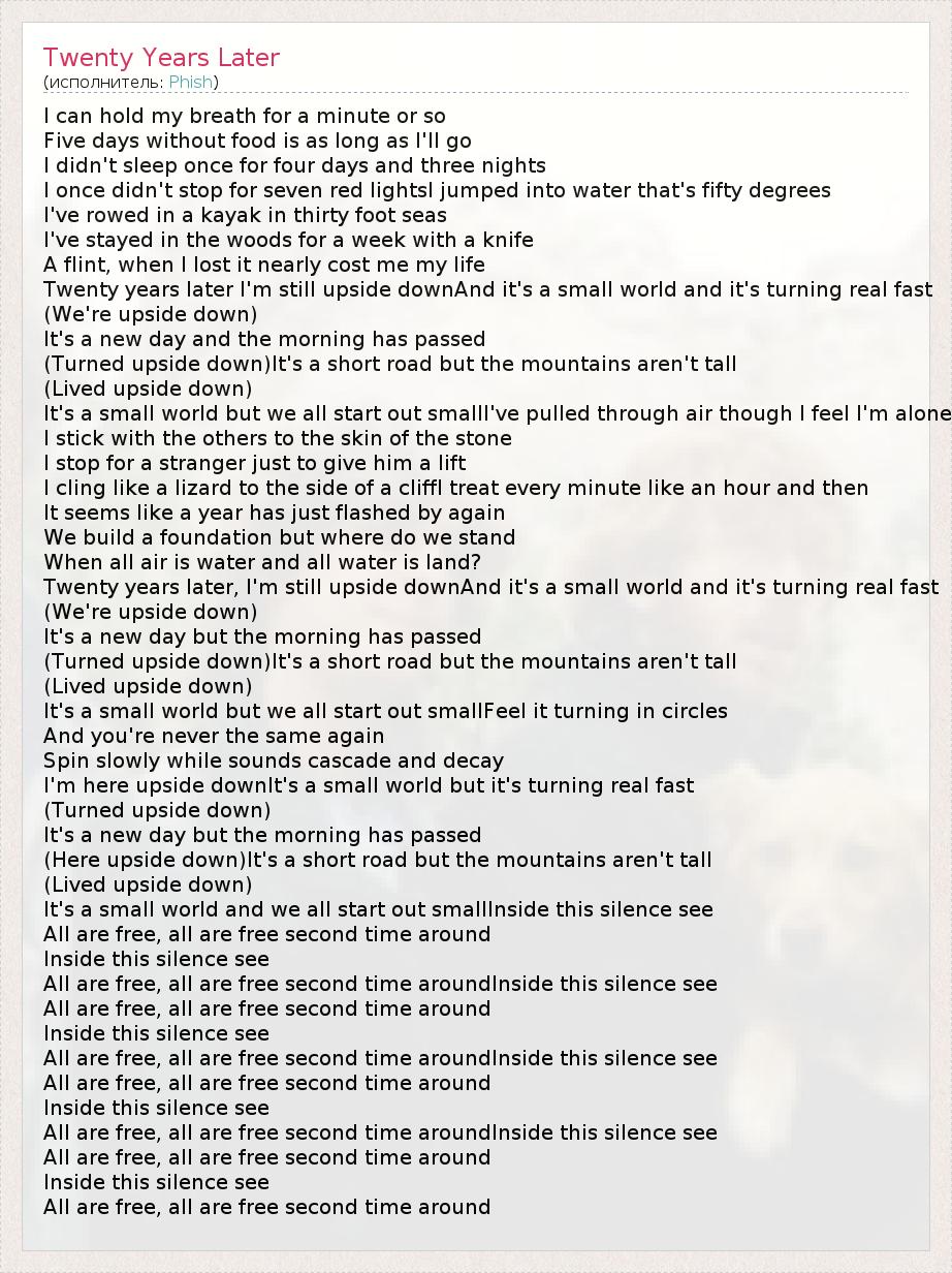 А как ты думаешь, о чем песня "Twenty Years Later" ?