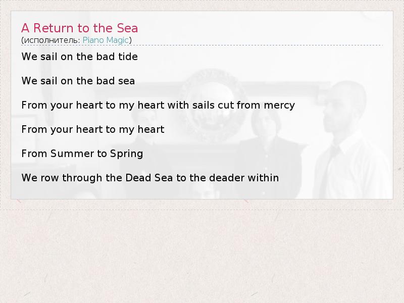 А как ты думаешь, о чем песня "A Return to the Sea" ?