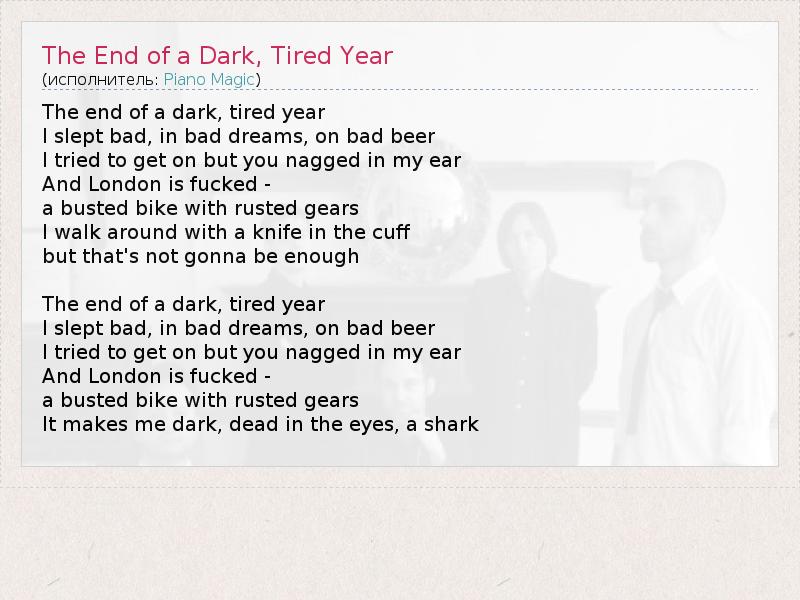 А как ты думаешь, о чем песня "The End of a Dark, Tired Year" ?