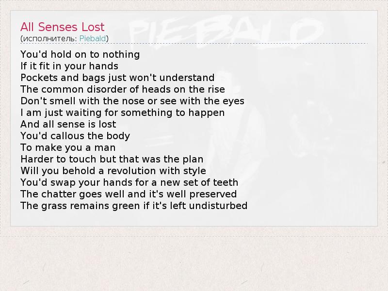 А как ты думаешь, о чем песня "All Senses Lost" ?