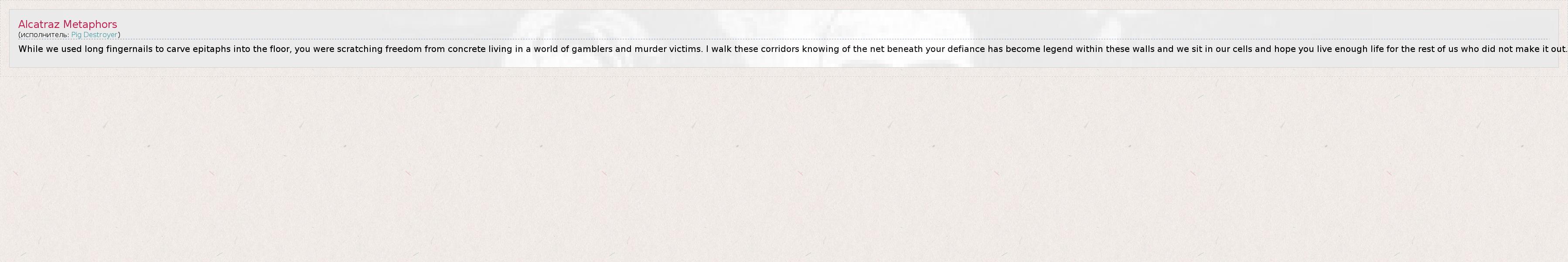 А как ты думаешь, о чем песня "Alcatraz Metaphors" ?