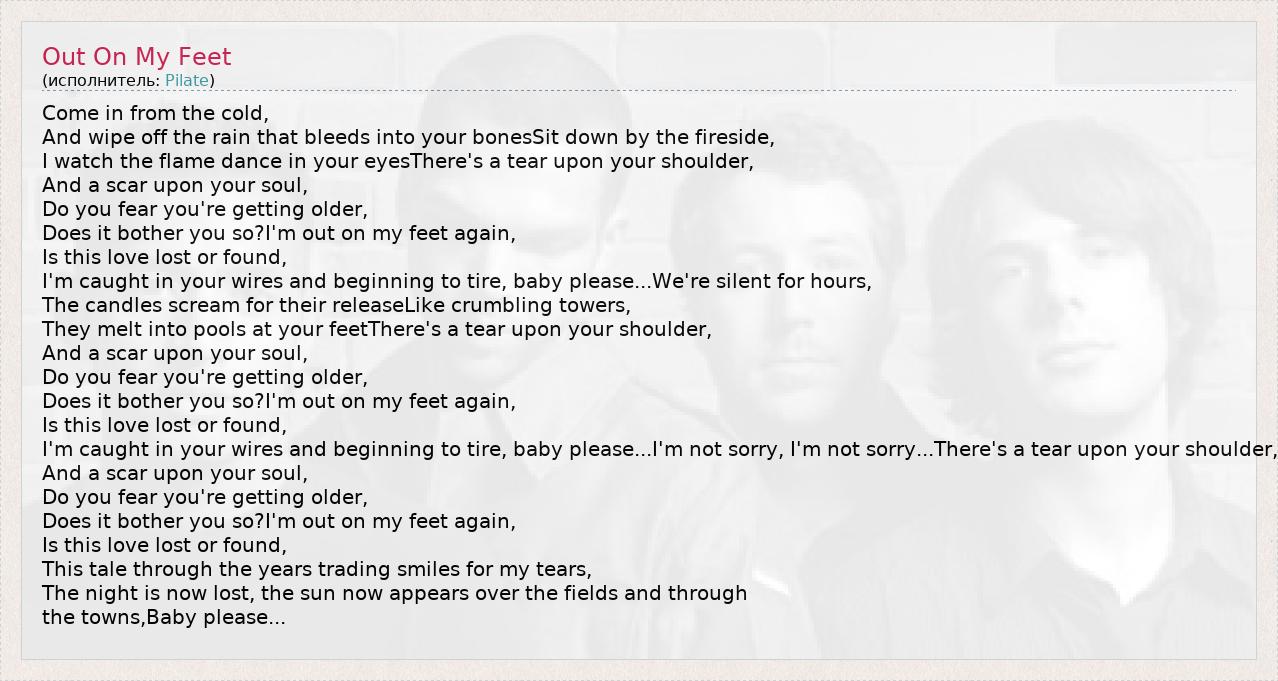 А как ты думаешь, о чем песня "Out On My Feet" ?