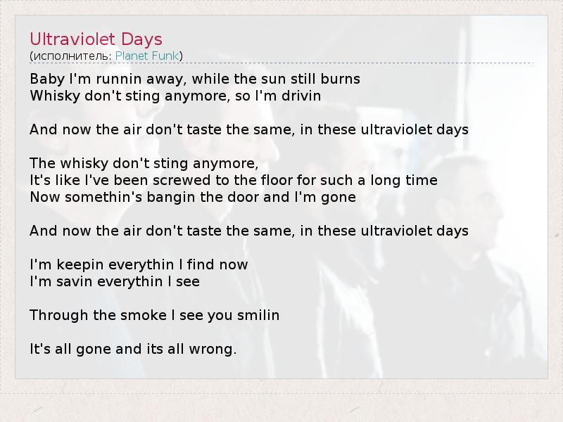 А как ты думаешь, о чем песня "Ultraviolet Days" ?