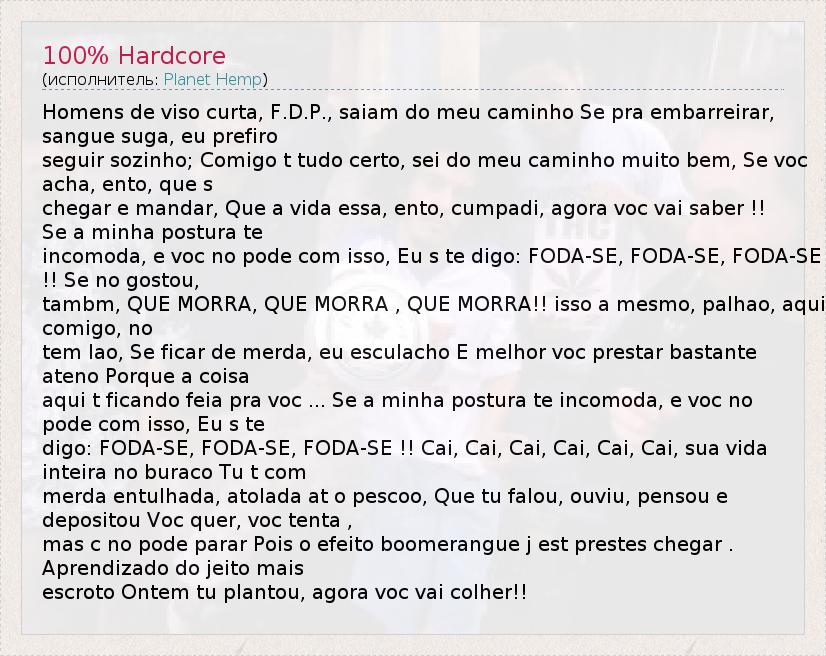 А как ты думаешь, о чем песня "100% Hardcore" ?