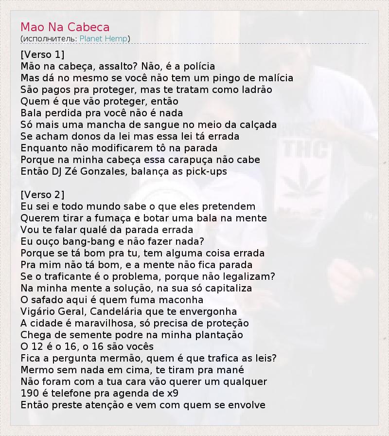 А как ты думаешь, о чем песня "Mao Na Cabeca" ?