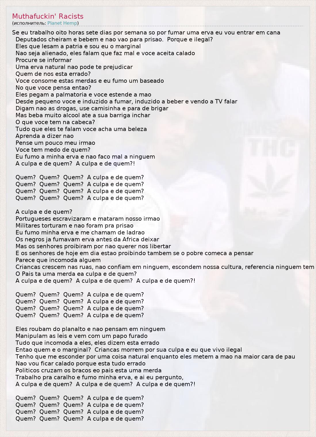 А как ты думаешь, о чем песня "Muthafuckin' Racists" ?