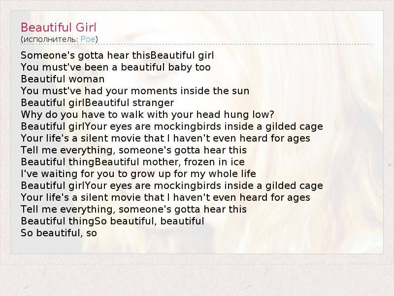 А как ты думаешь, о чем песня "Beautiful Girl" ?
