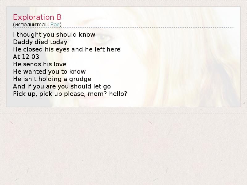 Это интересно:Named for a halloween costume based on an Edgar Allan Poe short story, Poe gained a contract with Atlantic during the boom of female singer/songwriters during the mid-'90s. Originally from New York City, she moved around frequently with her parents — a director and an actress — but returned to New York at the age of 16 when they divorced. Poe enrolled at Princeton, and played in a band during her time there. Signed to Atlantic in 1994, she recorded an album with several producers and co-writers and released Hello the following year. The single "Angry Johnny" pushed Hello into the album charts, and during 1996 Poe supported Lenny Kravitz with a band including guitarist... продолжение
