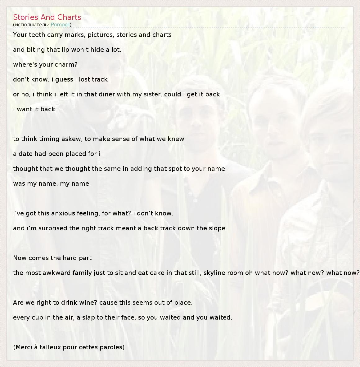 А как ты думаешь, о чем песня "Stories And Charts" ?