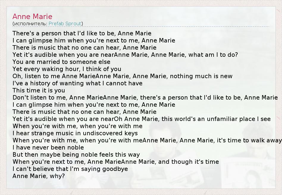 Don't listen to me, Anne MarieAnne Marie, there's a person that I'd like to be, Anne Marie