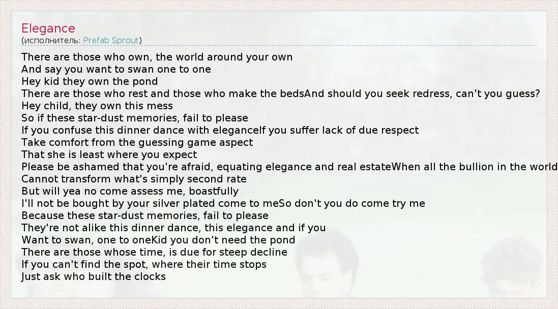 Это интересно:Группа образована в 1978 году в Великобритании.Образовавшись на пике «новой волны», Prefab Sprout в действительности не имели ничего общего с этим направлением - эклектичность музыки группы, своеобразный голос ее лидера Патрика Макэлуна, которого часто сравнивали с Элвисом Костелло, и достаточно банальные аранжировки композиций привели к тому, что большинство музыкальных критиков определили... продолжение