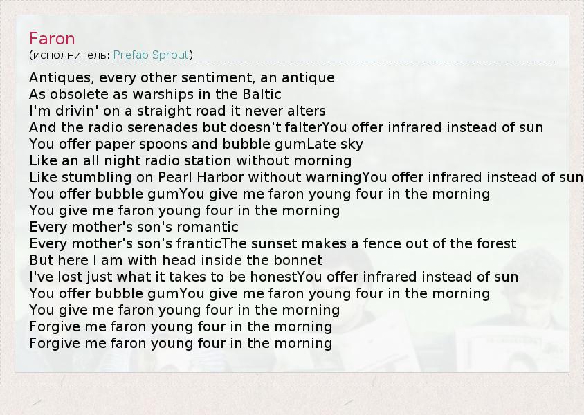 And the radio serenades but doesn't falterYou offer infrared instead of sun