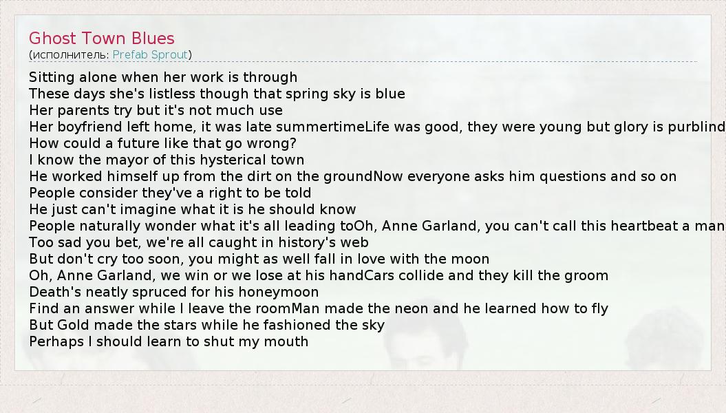 А как ты думаешь, о чем песня "Ghost Town Blues" ?