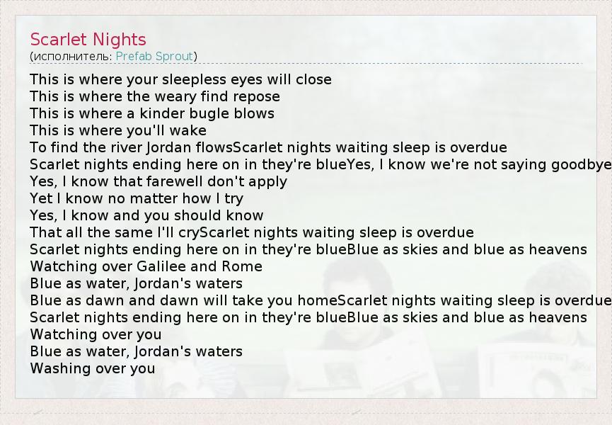 А как ты думаешь, о чем песня "Scarlet Nights" ?